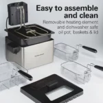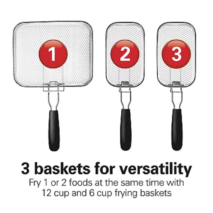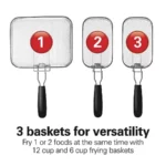 - Double basket design lets you cook two different foods at the same time without flavor transfer