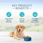 Formulated with essential vitamins, minerals, and antioxidants, this recipe helps maintain a strong immune system and promotes healthy skin and a shiny coat. Free from poultry by-product meals, corn, wheat, soy, and artificial preservatives, it delivers pure, natural nutrition you can trust.