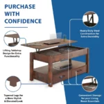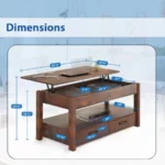 Versatile: Effortlessly lift the tabletop to instantly transform this stylish coffee table into a functional workspace or dining table, providing a convenient surface for working, studying, or having a meal next to your couch. This lift-top table’s multi-purpose function is ideal for environments with limited space such as small rooms, apartments, dorms, or dens.