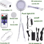 Linkable Under Cabinet LED Lighting 12V Dimmable Puck Lights with Wireless RF Remote Control, Hardwired & Wall Plug in for Display Lighting
