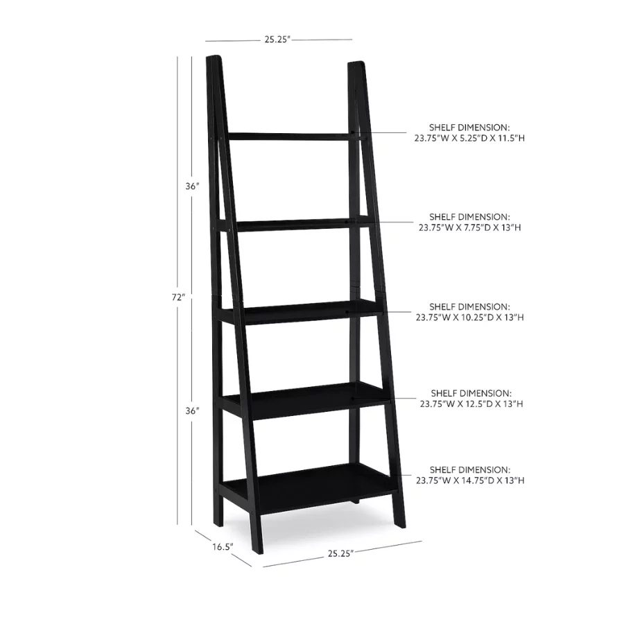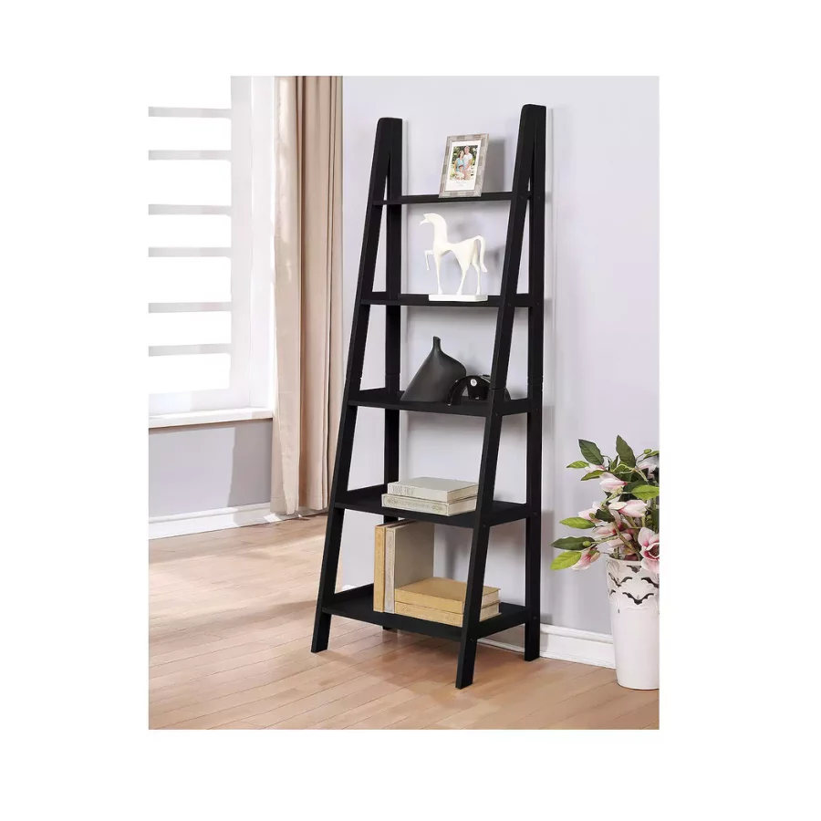 - Five shelves offer generous storage and display space for books, plants, and décor.
