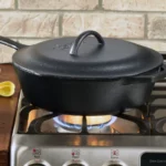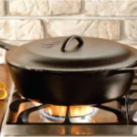 Measuring 12″ across with 3″ deep sides, 18.25″ overall length (including handles), and weighing 14 lb. 8 oz., it’s sturdy yet manageable for family-sized meals. Dual pour spouts and ergonomic handles make handling easy.