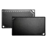 Durable & Practical Design Measuring 16.75″ x 9.5″ with a raised lip to contain drips, plus dual corner handles for easy flipping and transport. Oven and broiler safe, compatible with gas, electric, ceramic, and induction cooktops, plus perfect for outdoor grills or campfires.