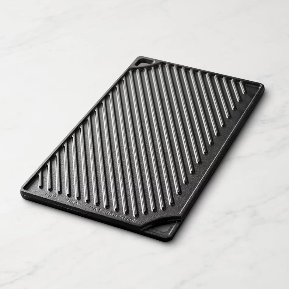 Durable & Practical Design Measuring 16.75″ x 9.5″ with a raised lip to contain drips, plus dual corner handles for easy flipping and transport. Oven and broiler safe, compatible with gas, electric, ceramic, and induction cooktops, plus perfect for outdoor grills or campfires.