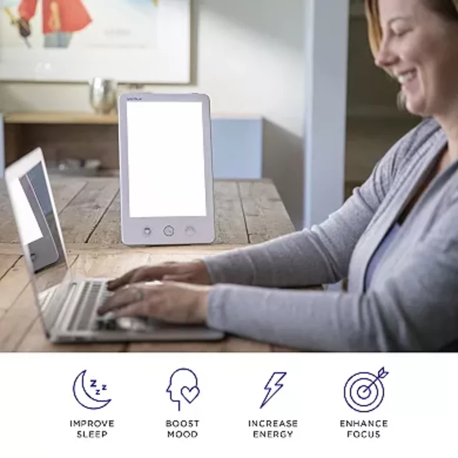 - LED, UV-FREE, FULL SPECTRUM LIGHT delivers up to 10,000 lux (light level) intensity for effective light therapy