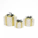 | Set Contents | 3 lighted fabric gift boxes (graduated sizes) |