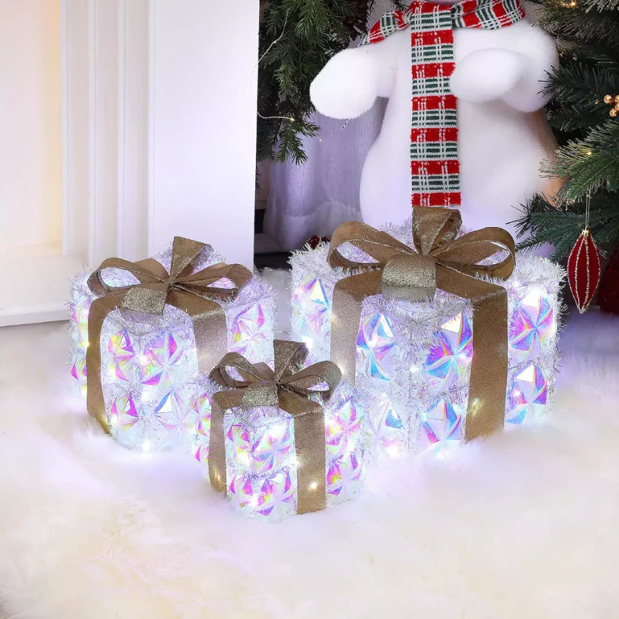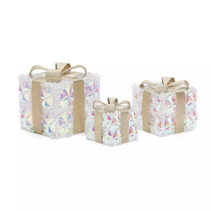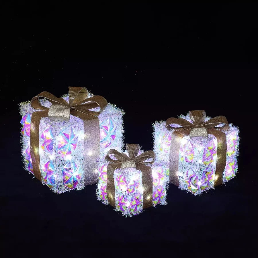 | Set Contents | 3 pre-lit gift boxes (large, medium, small) |