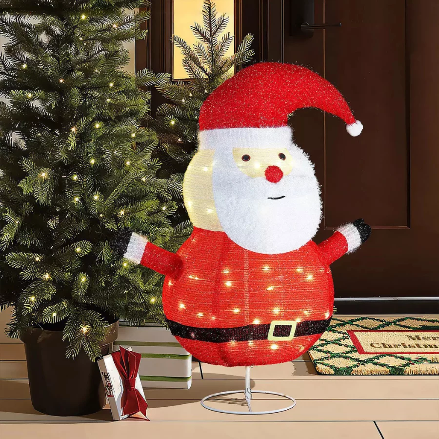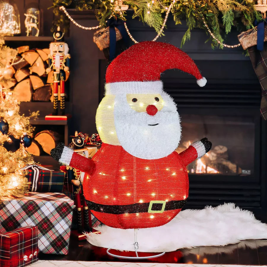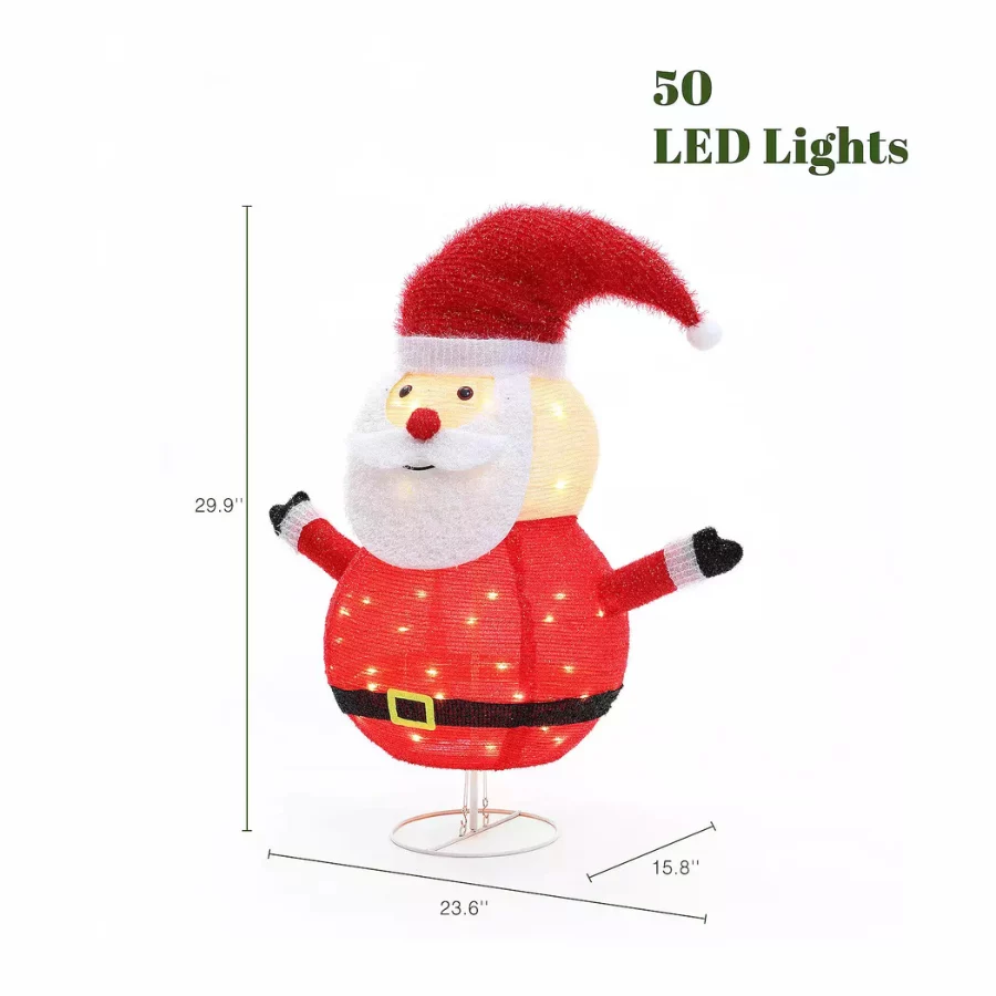- Festive showstopper: 29.9″ tall Santa with classic red hat and a warm silver glow to delight day or night.