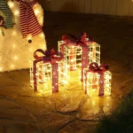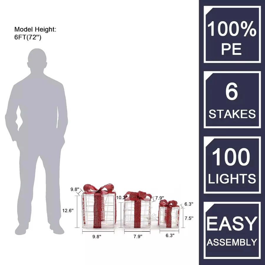 LuxenHome Set of 3 Lighted Presents – Holiday Decoration with Red Ribbon Accents photo review