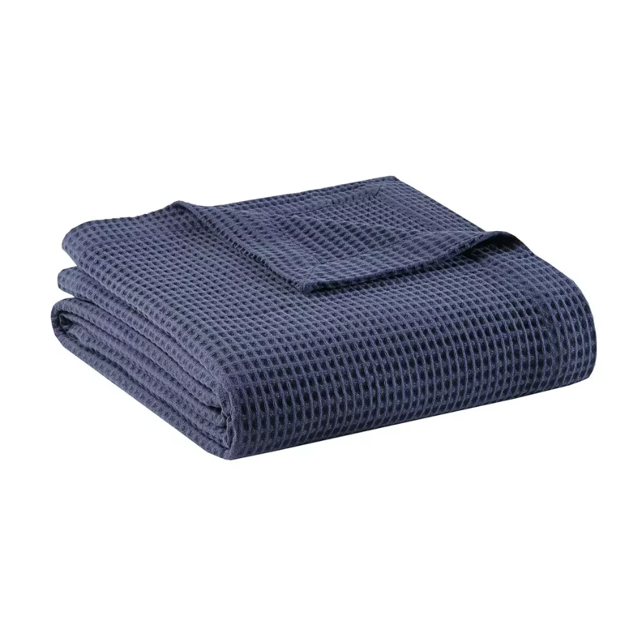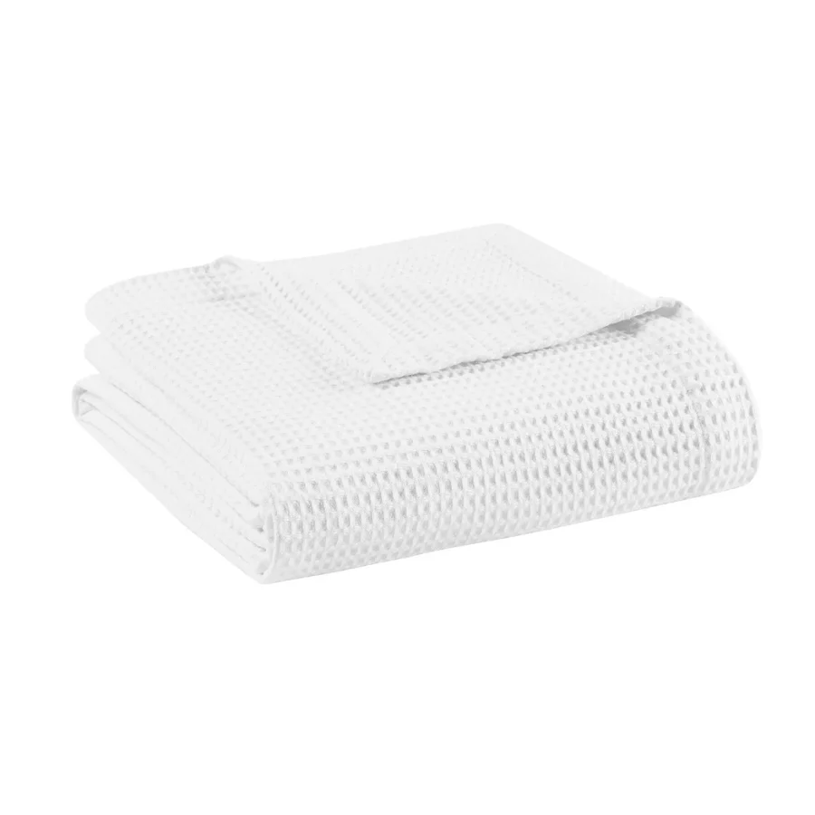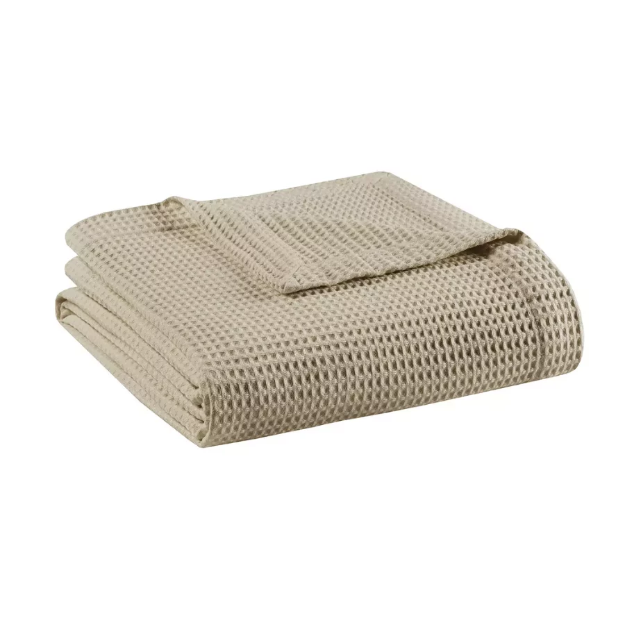 Madison Park Waffle Weave 100% Cotton Lightweight Blanket – Breathable, All-Season Layer for Bed or Couch