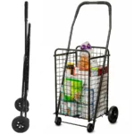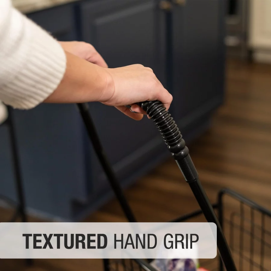 FOLDING SHOPPING CART is compact enough to easily fit into the back of a car, or on public transportation. Easily rolls across most surfaces with a extra tight grip handle that will allow it to be effortlessly carried up steps