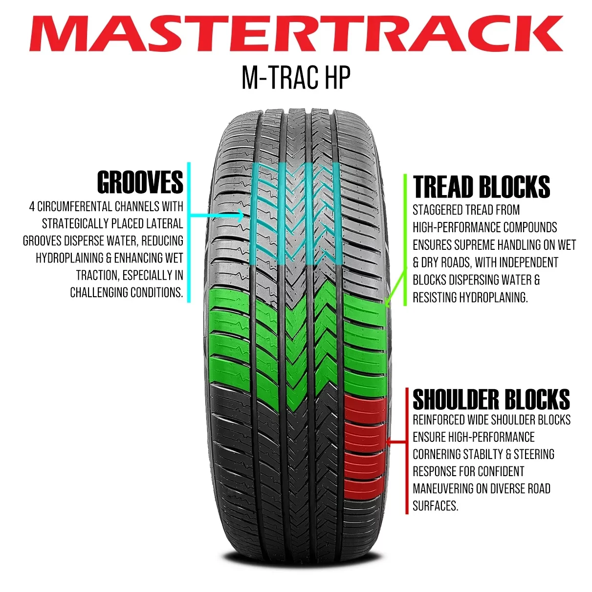 Mastertrack provides a comprehensive range of high-quality tires for passenger vehicles, light trucks, specialty trailers, commercial trucks, buses, and radial applications. Our products are meticulously designed, engineered, and rigorously tested using advanced technology and strict quality controls at world-class facilities. This commitment to excellence ensures superior traction, enhanced fuel efficiency, long-lasting durability, and exceptional safety in all driving conditions—delivering the performance and reliability that discerning customers can depend on.