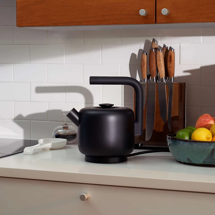 Add modern style and everyday convenience to your kitchen with a matte black electric kettle designed for smooth one handed pouring. Rounded contours and tubular details create a sculptural look while the stainless steel body ensures durability for daily use. With a one point five liter capacity this kettle is ideal for tea pour over coffee instant soups and any hot water needs throughout the day.