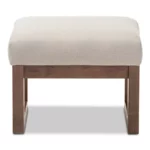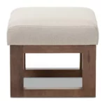 Mid-Century Modern Upholstered Stool – Accent Ottoman or Vanity Seat with Tapered Wood Legs – Durable Fabric, Compact Size & Retro Design for Bedroom/Living Room