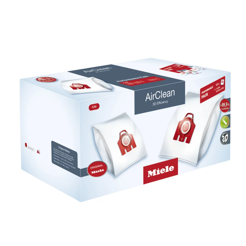 Achieve peak performance and superior air quality with the Miele FJM HA50 Performance Pack – a value-packed bundle featuring 16 genuine AirClean 3D Efficiency FJM dustbags plus 1 HEPA AirClean HA50 filter, all at an exclusive discounted price. Designed specifically for Miele canister vacuums, this set ensures maximum filtration, efficiency, and convenience for healthier home cleaning.