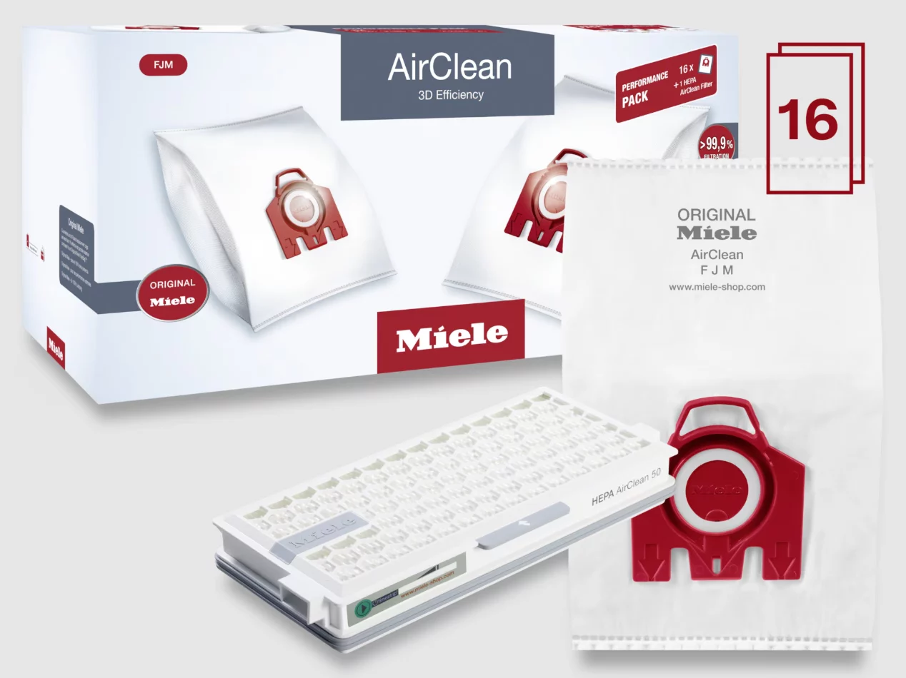 Miele FJM HA50 Performance Pack – 16 AirClean 3D Dustbags + HEPA AirClean Filter Bundle