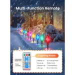 Solar Christmas Lights Outdoor with 8 Lighting Modes: This christmas outdoor decorations lawn lights have 8 different lighting modes, including Steady-on, Waves, Sequential, Slo-glo, Chasing/Flash, Slow Fade, Twinkle/Flash and Combination. You can adjust different lighting modes according to different situations and mood.