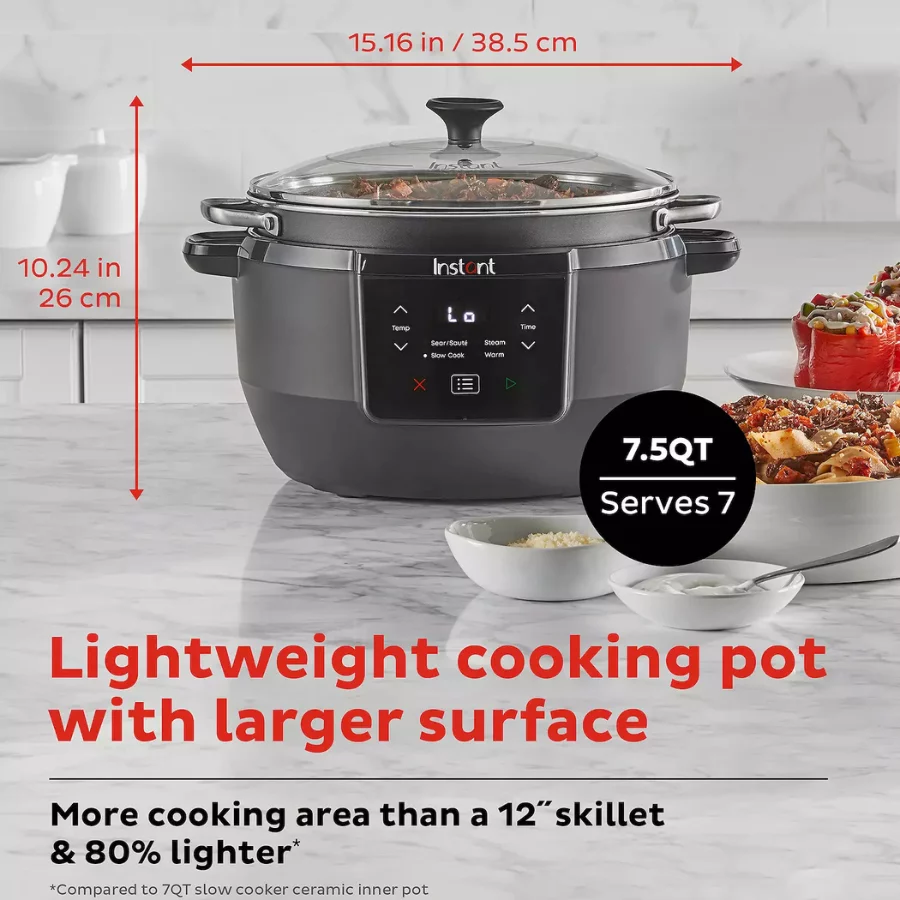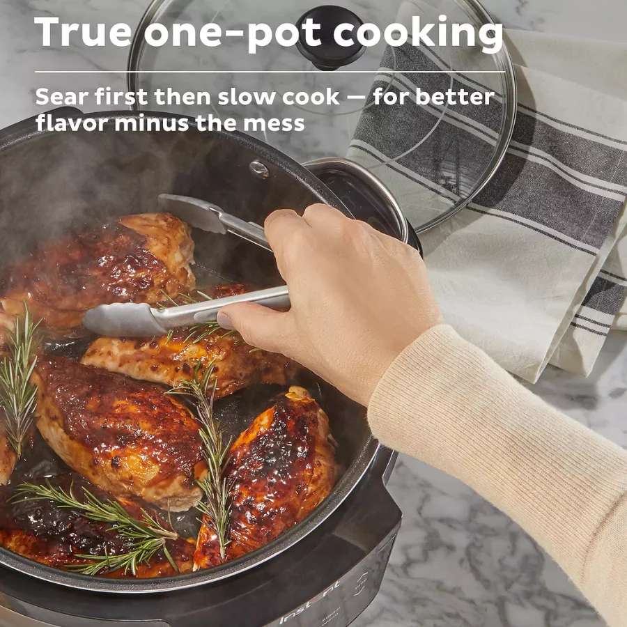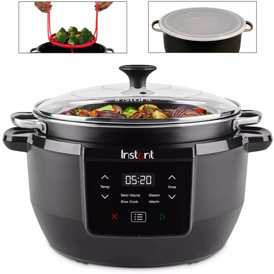 - Slow cook, sear/sauté, steam, and warm with one versatile appliance