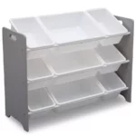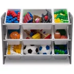 - A Place for Everything: Includes nine (9) plastic bins in varying sizes to easily stow toys, art supplies, or books