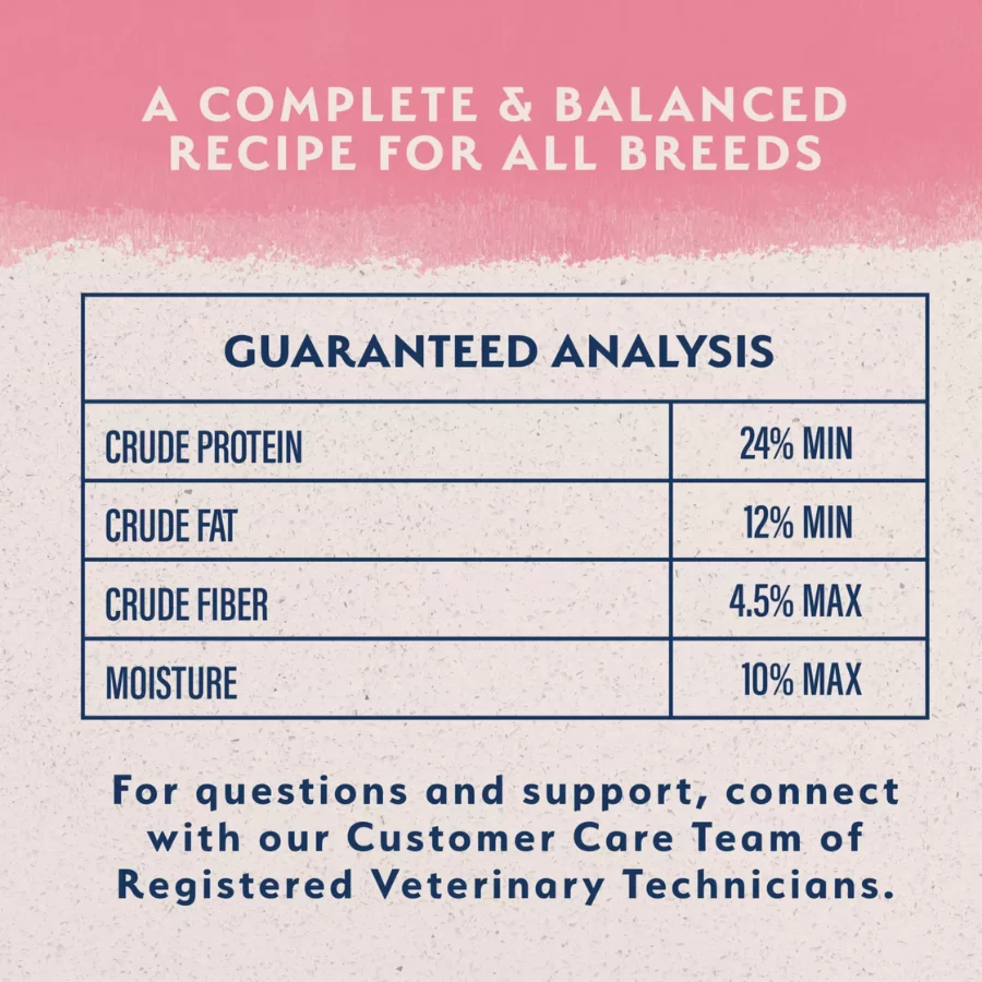 | Main Ingredients | Salmon, Menhaden Fish Meal, Whole Grain Brown Rice, Brewers Rice, Flaxseed |
