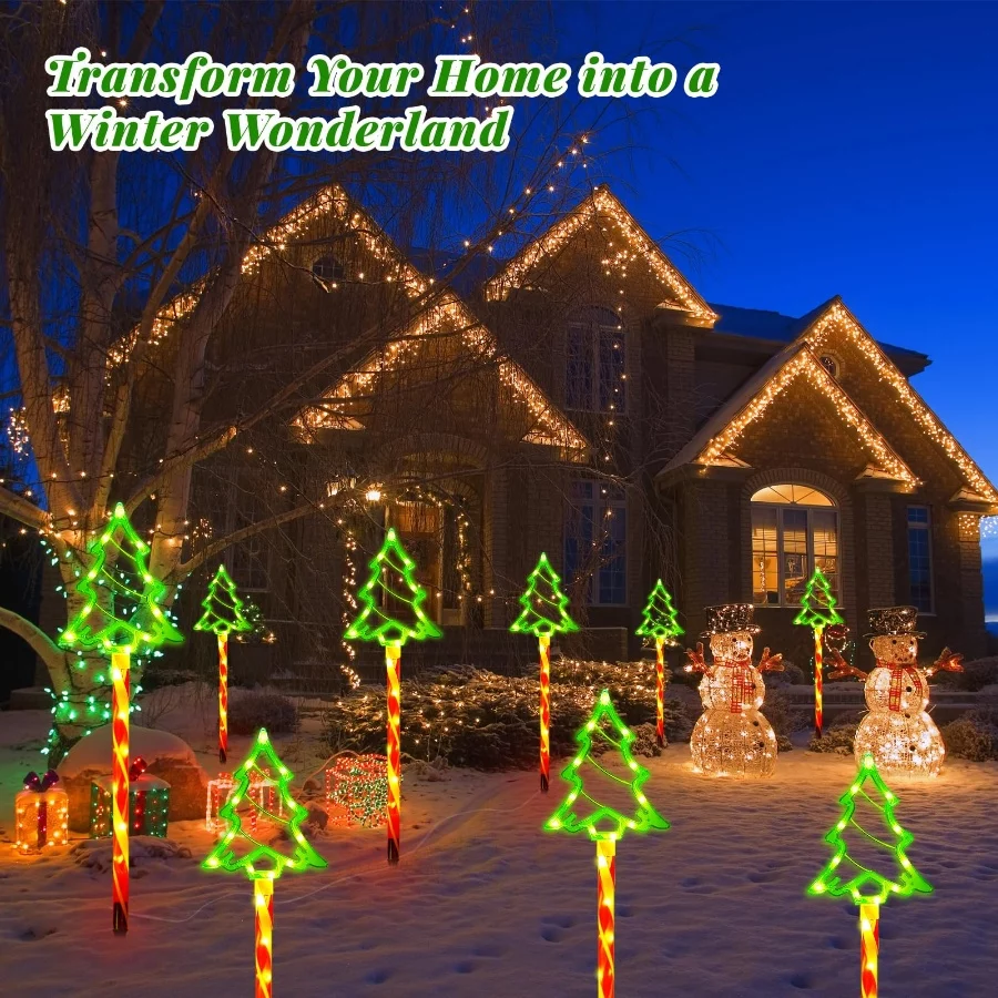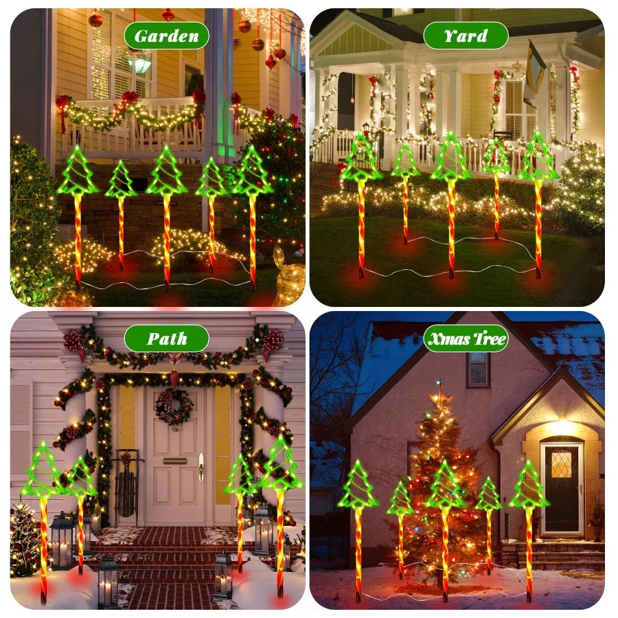 Outdoor Christmas Pathway Lights, 5 in 1 Candy Cane Tree, Waterproof LED with 8 Lighting Modes for Lawn photo review