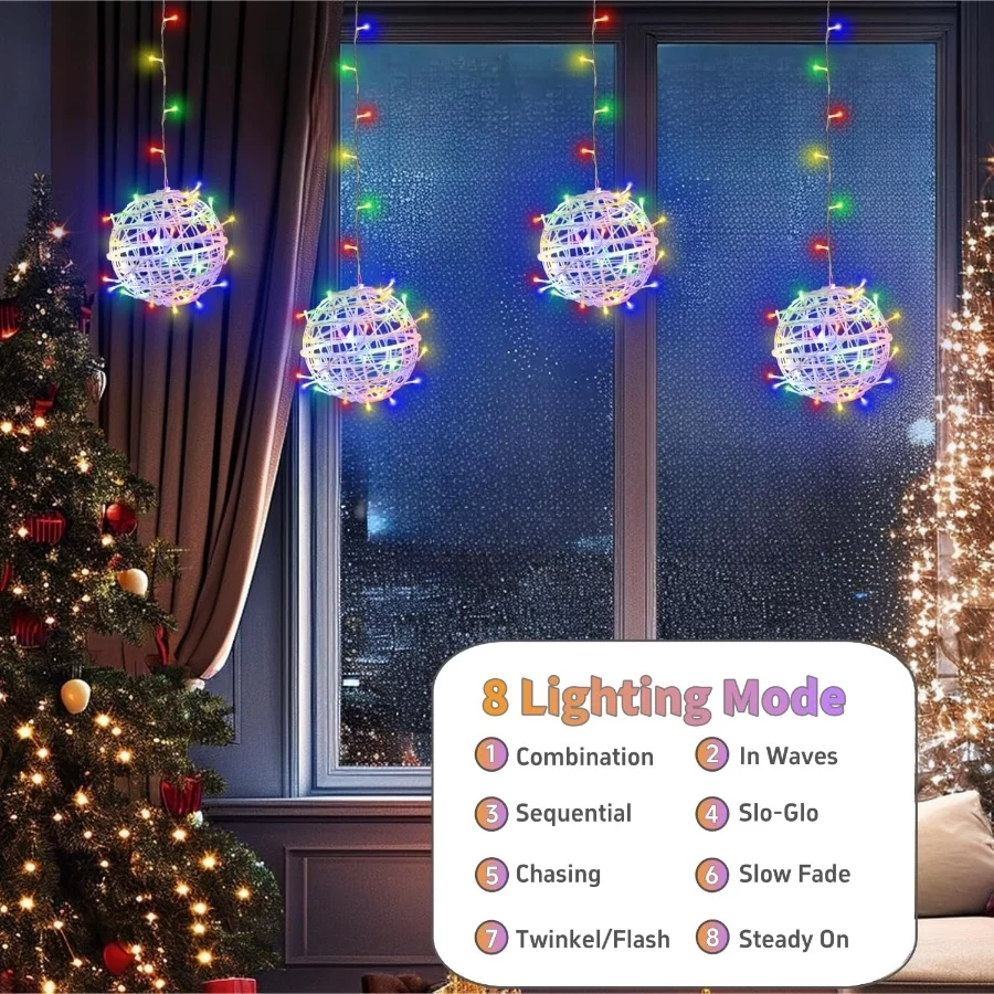 8 Lighting Modes – Each christmas ball light has end-to-end connection that allows 3 light strings connected together to meet your different decor needs. Christmas lights with 8 different light patterns: Combination, In waves, Sequential, Slo-Glo, Chasing/Flash, Slow fade, Twinkle/flash and Steady on. Different modes represent different moods.