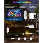 DIY Scenes – Over 300 preset scenes, including holiday themes, everyday settings, and mood lighting. You can create custom scenes with full DIY flexibility because each light operates independently.The Halloween outdoor lights work with Alexa and Hey Google. You can sync with music or microphone commands. Use the app to set timers that activate at night and shut off during the day. Control the lights at any time using the remote or the app over 2.4G WiFi. The outdoor eaves lights support grouped control.