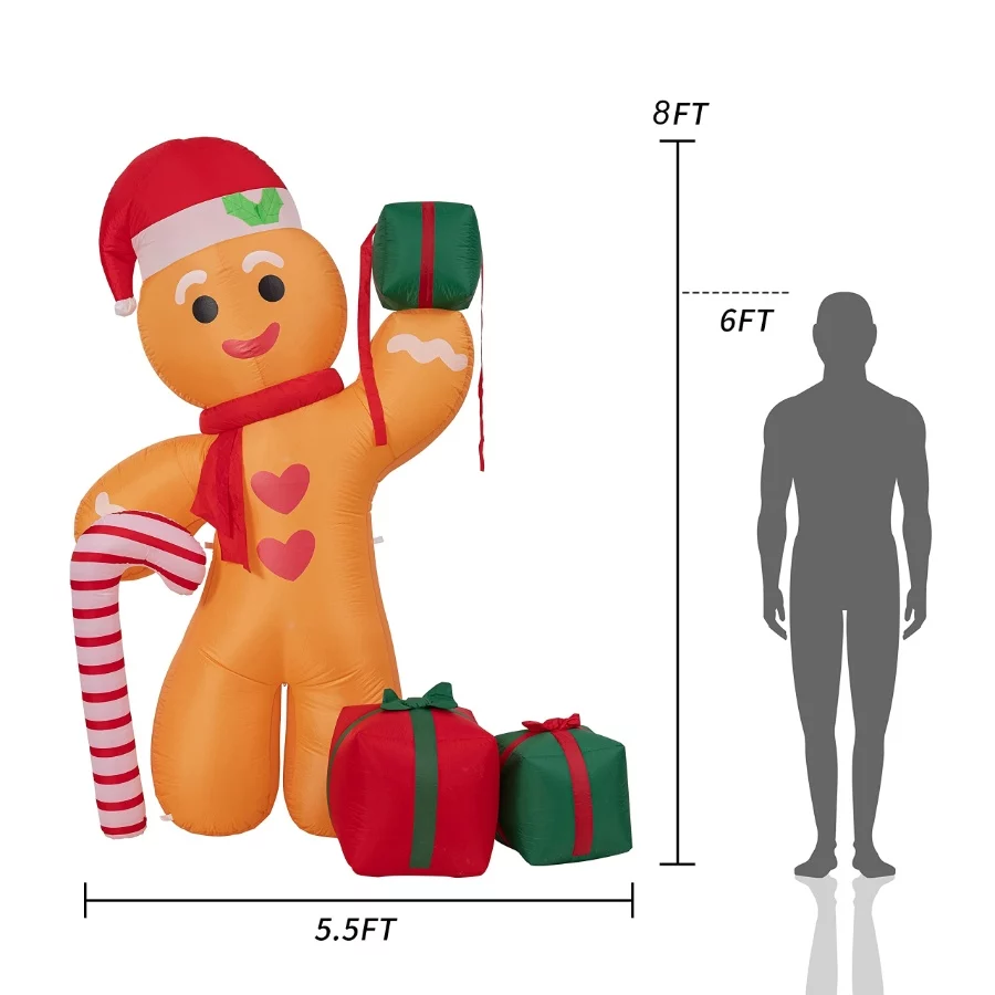 Peyton 8FT Inflatable Gingerbread Man with Candy Cane & Gift Boxes – LED Lighted Christmas Decoration for Indoor & Outdoor Holiday Display photo review