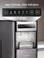 Easy Controls, Clear Indicators: The intuitive control panel and clear indicators allow for effortless operation; power the machine on/off, start/pause ice making, switch the ambient light on/off, choose ice size, and activate the self-cleaning function with the press of a button.