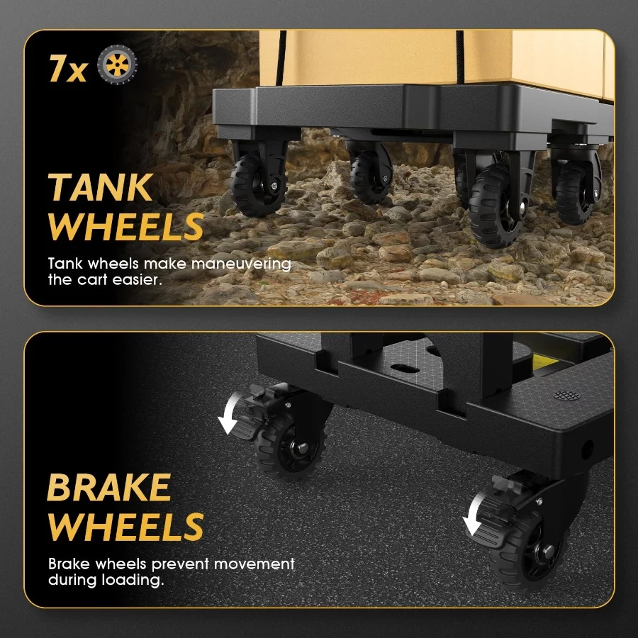 Portable Folding Hand Truck Dolly with Brakes , 600lbs Heavy Duty Luggage Cart with 7 Wheels, Collapsible Utility Cart & Extendable Base.