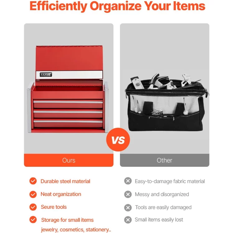 Convenient Opening & Closing: The top cover features a magnetic locking design. Simply close the top lid to keep the drawer toolbox securely locked, ensuring the drawers won’t accidentally slide out during movement, and avoiding items falling. The smooth sliding drawers provide easy access without any sticking, allowing for smooth and stable opening.