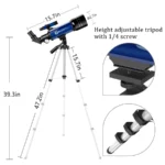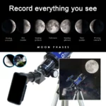 Telescope Kit with Tripod & Phone Adapter: This portable astronomy telescope kit includes a universal phone adapter and a fully adjustable tripod, enabling beginners to effortlessly explore the cosmos via their smartphone screen and capture stunning celestial photos. The tripod’s height can be customized to suit users of all ages, ensuring comfortable stargazing for everyone—from kids to adults.Portable & Travel Friendly Perfect for budding astronomers!