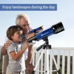 Superior Optics for Precise Observation: Equipped with a 400mm (f/5.7) focal length and an impressively large 70mm aperture, it features fully multi-coated optical glass lenses. These lenses boast higher light transmission coatings, delivering breathtakingly clear images while safeguarding your eyes.Perfect telescope for kid and adult beginer to explore plants and moon.