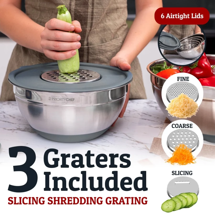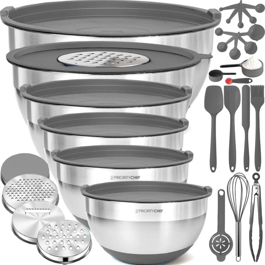 Priority Chef Premium 30PCS Mixing Bowl Set, Stainless Steel with Lids, Non-Slip Bases, 3 Graters & Silicone Kitchen Utensils photo review