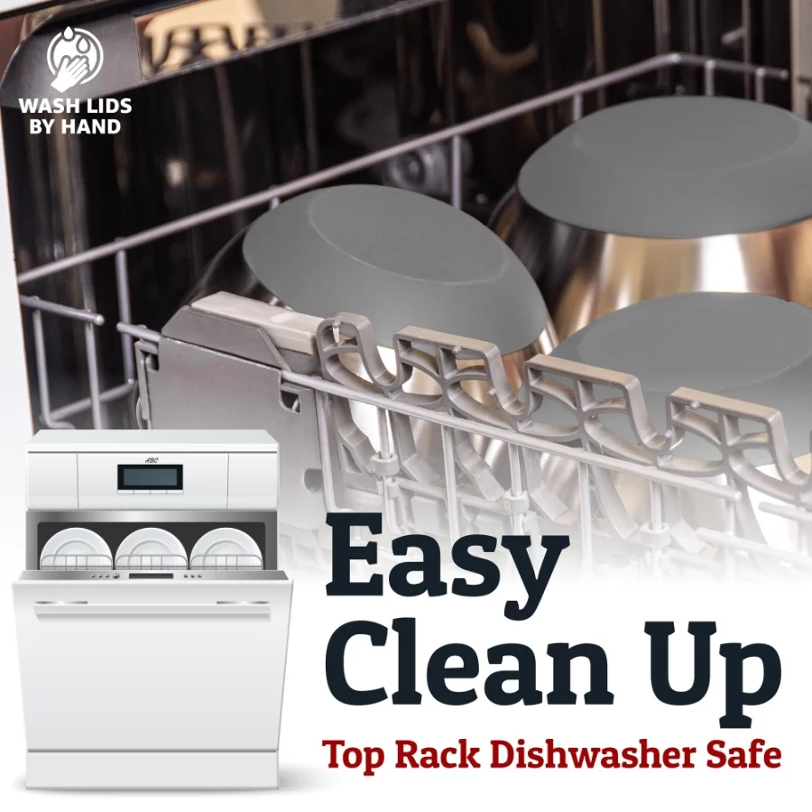 Space-Saving Nesting Design with Matching Lids – This 6-piece set of large nesting bowls stacks neatly inside one another, keeping your kitchen cabinets organized and clutter-free. Each stainless steel bowl has its own fitted lid, so nothing goes missing. Ideal for small kitchens, apartment living, or anyone who values a tidy and functional cooking space.