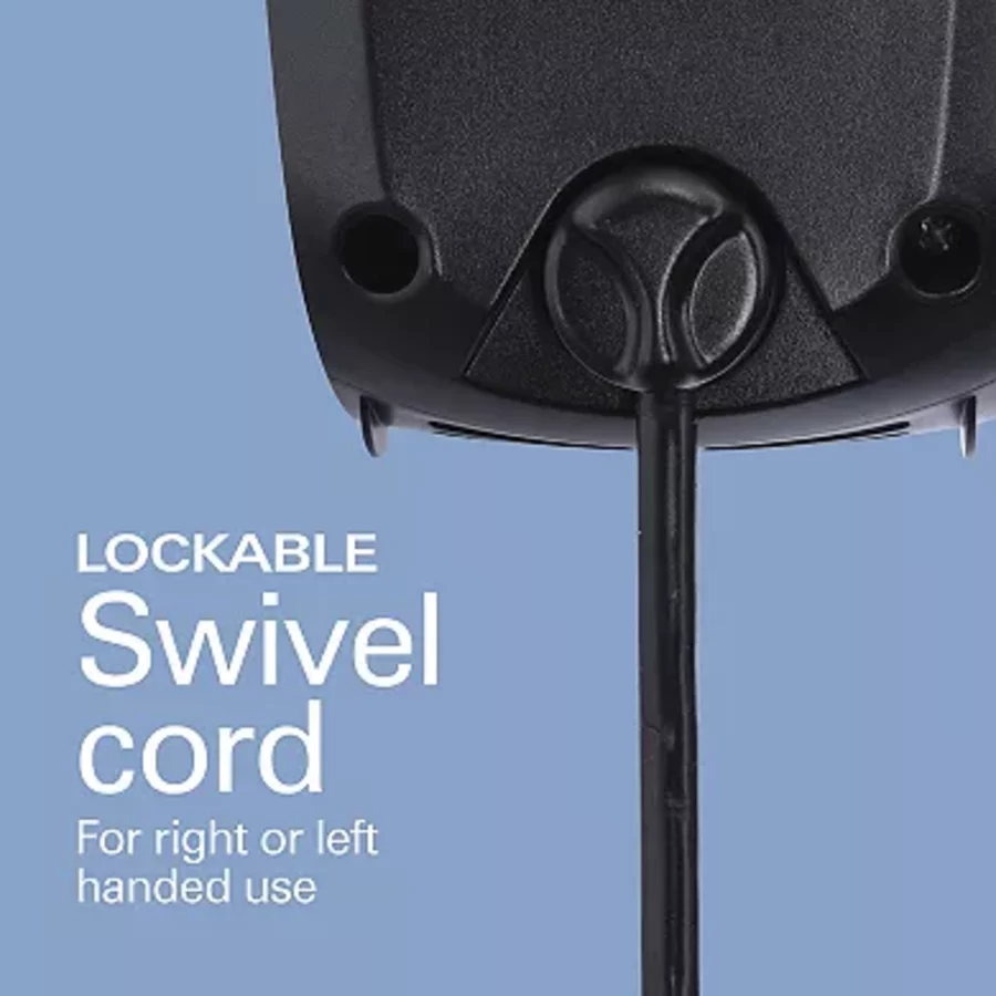 - Swivel cord adjusts and locks into place, accommodating both right- and left-handed use while staying out of the way