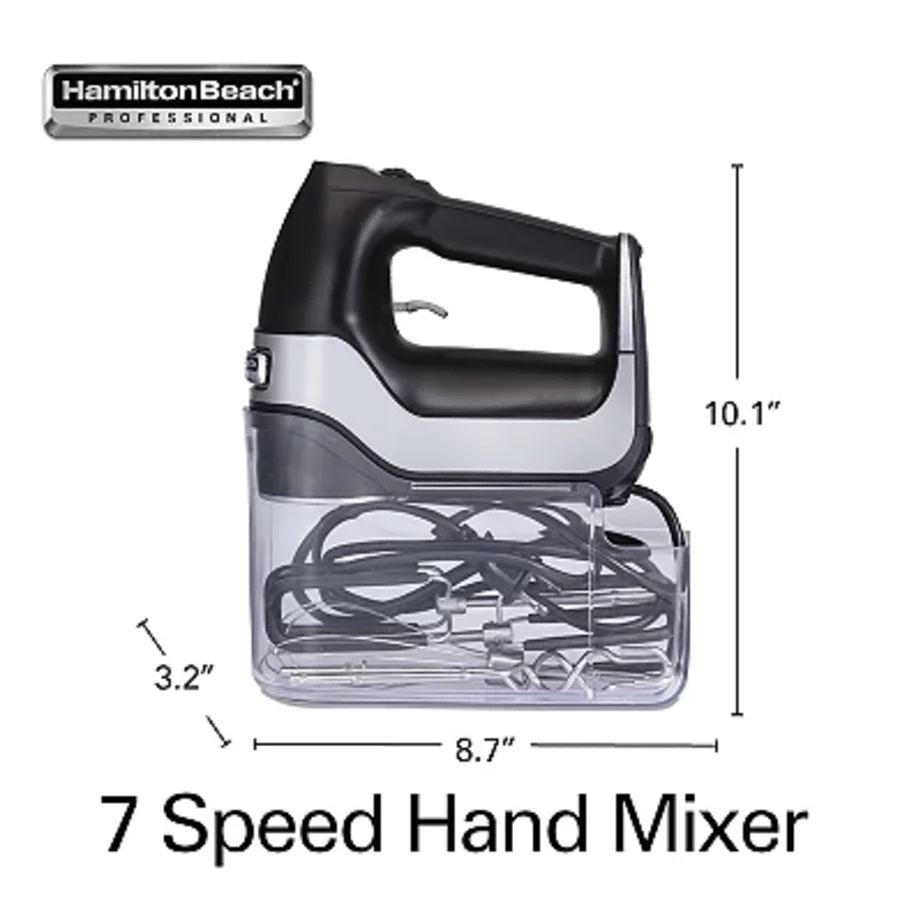 Professional 7-Speed Hand Mixer with DC Motor & Snap-on Storage Case – Powerful, Lightweight for Whipping, Mixing & Baking – Easy Clean Attachments