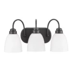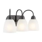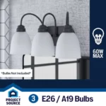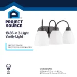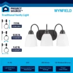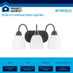 This stylish vanity light from the Project Source Wynfield Collection offers a brushed nickel finish paired with three elegant frosted glass shades.