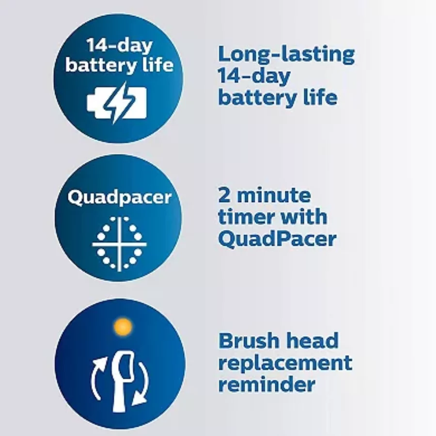 - Smart Timer with QuadPacer: Built-in two-minute timer encourages complete brushing in all four mouth quadrants for dentist-recommended results.