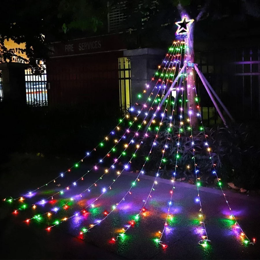 About Colored Fairy LED Christmas Star Lights320 LED lights with 9 string lights.The top star diameter is 12.6IN, star height 12.6N.Each string lights length:11.48ft. Plug cable length:16.4ft.