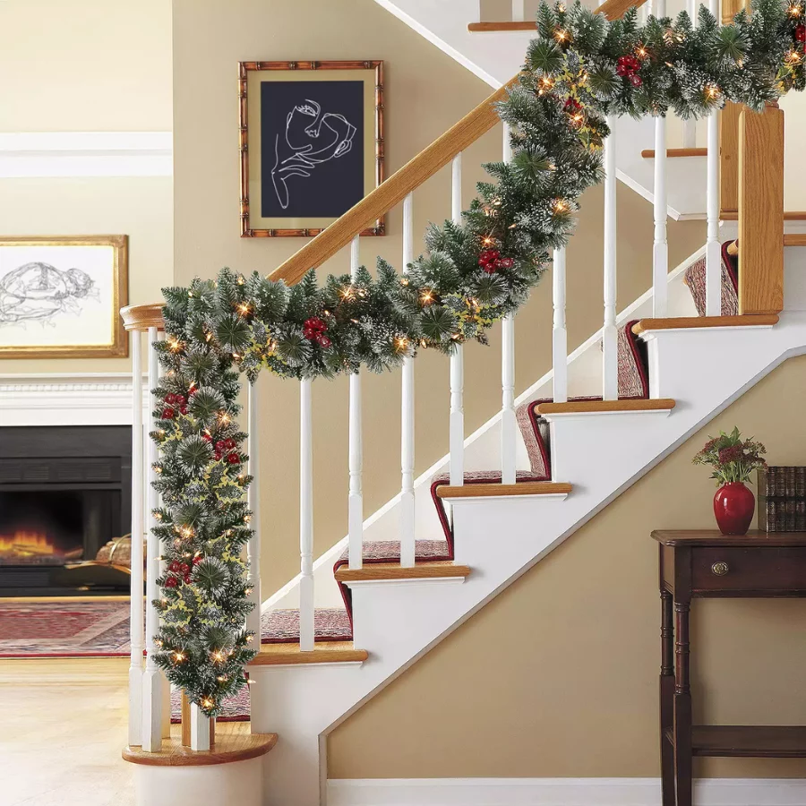 8 reviews for Puleo International 9-Ft Pre-Lit Snowy Silverton Pine & Berries Garland – Artificial Holiday Decor