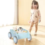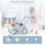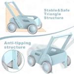 Push and Pull Wooden Baby Walker with Wheels, Montessori Learning Walking Toy Gift for Boys Girls, Sky Blue.