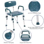 Quick Release Teal Shower Chair – 300 lb Capacity with Back and Arm Support for Safety and Comfort