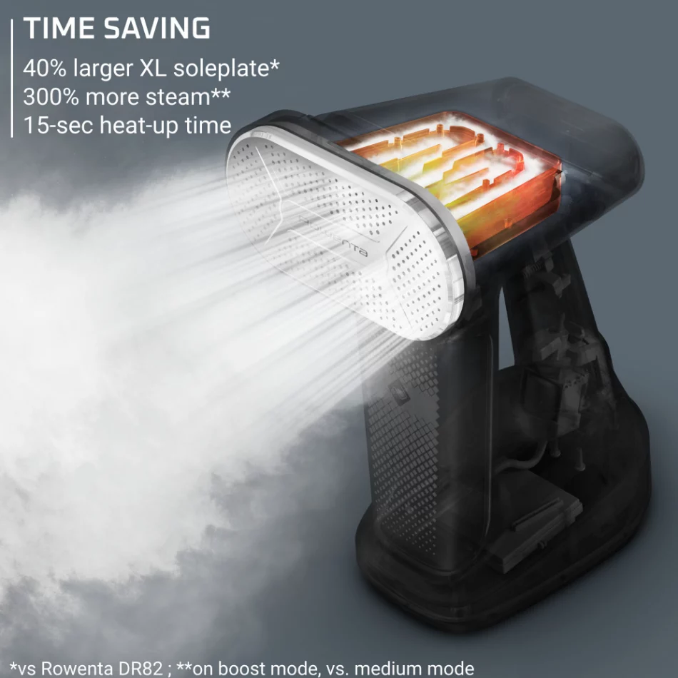 • 40% larger XL soleplate covers more fabric area quickly for faster, more efficient wrinkle removal