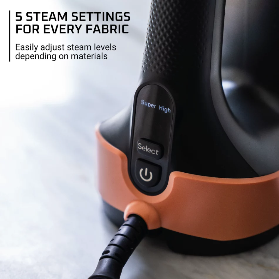 - Lightning-fast 15-second heat-up and 5 fabric-specific steam settings for instant, tailored performance