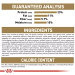 Crude Protein (Min) 23% – Crude Fat (Min) 11% – Crude Fiber (Max) 5.7% – Moisture (Max) 10% – EPA (Min) 0.17% – DHA (Min) 0.07% – Taurine (Min) 0.2% – Glucosamine (Min) 891 mg/kg – Chondroitin Sulfate (Min) 9 mg/kg