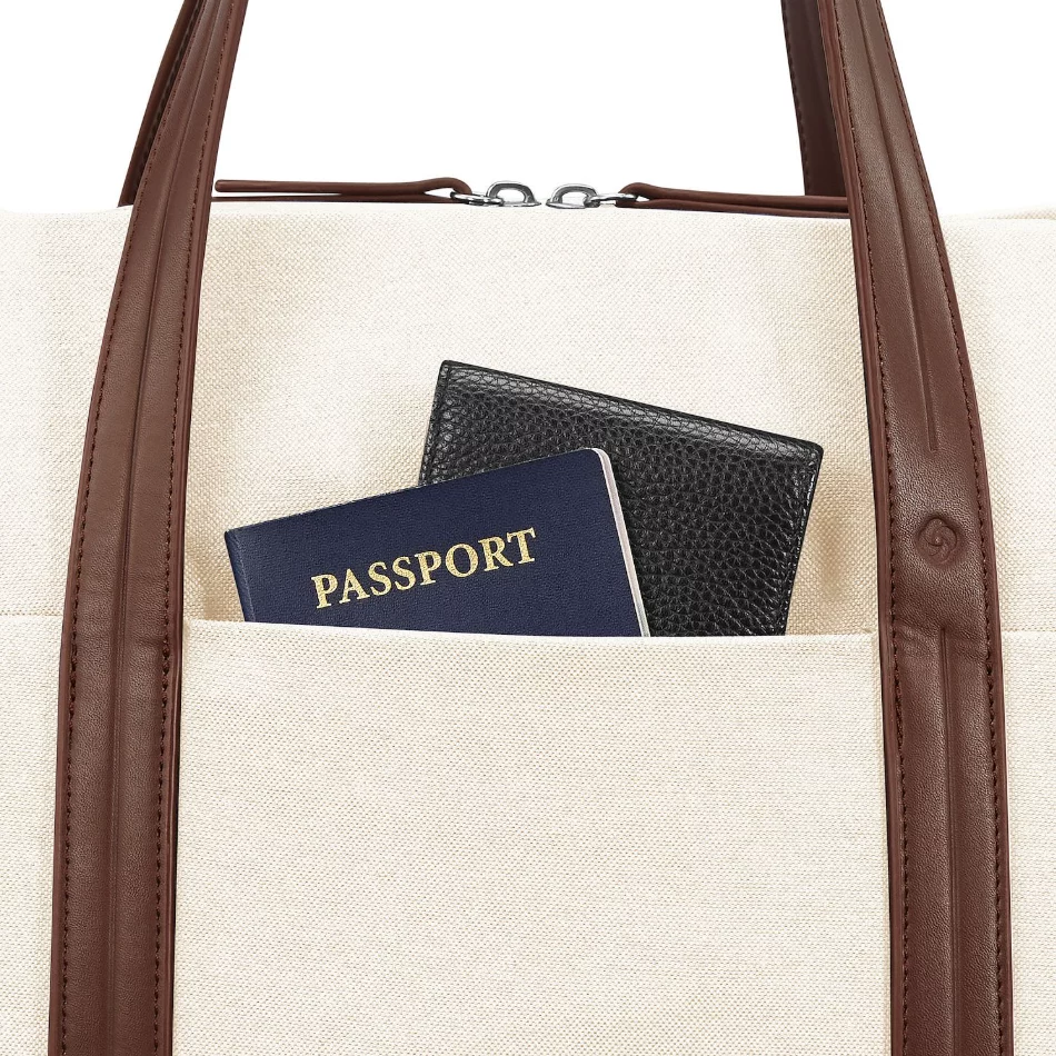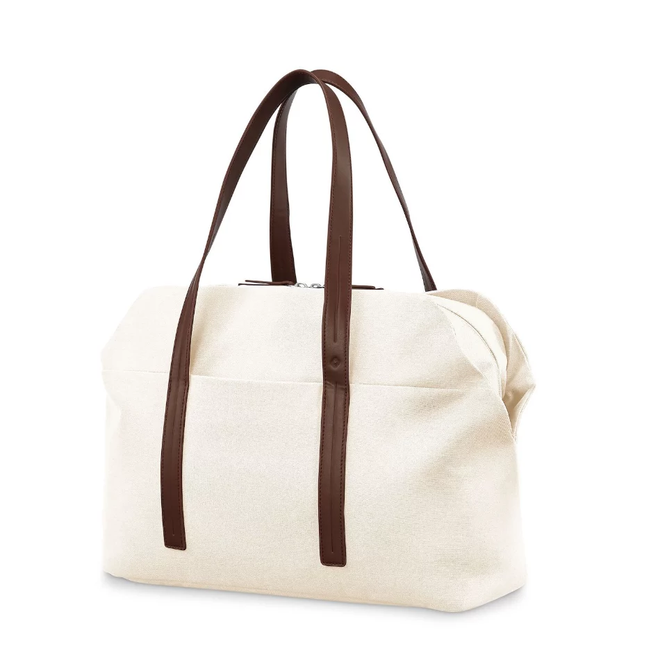 - Convenient Exterior Storage: Front zip pocket with key fob, two side storage pockets, and discreet attachments for the adjustable, removable shoulder strap (52″ fully extended, 6.5″ drop-down handles).
