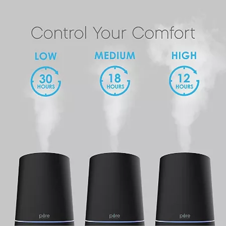 - Provides up to 30 hours of mist on the low setting, 18 hours on the medium setting, and 12 hours on the high setting.