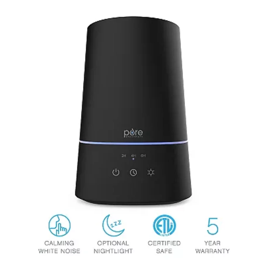 - Uses quiet ultrasonic technology to emit a safe, cool mist that won’t disturb you while working, relaxing, or sleeping.