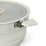 The clever collapsible design collapses flat for rattle-free packing, while the robust three-layer base ensures excellent heat distribution on any stove, including induction cooktops at home or portable units in camp.
